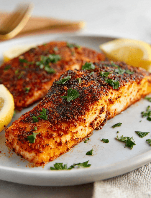 - Season the Fish : Drizzle the avocado oil evenly over the salmon fillets. Sprinkle the seasoning blend over the tops and sides of each fillet, pressing gently to form a light crust.