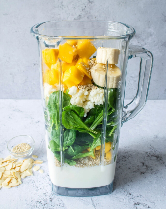 - Prep Your Portions: To make your mornings even faster, portion the hemp hearts, spinach, mango, banana, and cauliflower into individual freezer-safe bags. When you’re ready to eat, just dump one bag into the blender, add the cottage cheese and water, and blend!