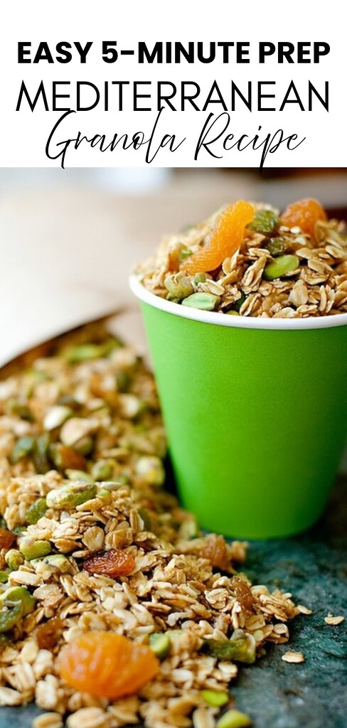It’s an easy homemade Mediterranean granola that you can whip up in under an hour. Making a big batch on Sunday means you have a delicious, ready-to-go breakfast for the entire week. No more reading confusing labels at the grocery store!
